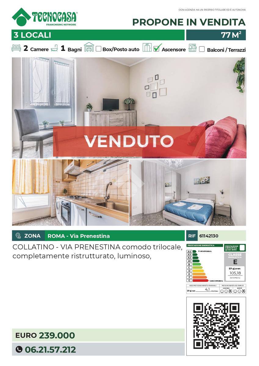 Nel cuore della zona Prenestina a Roma, proponiamo un appartamento in vendita che offre una combinazione di comfort e praticità.
