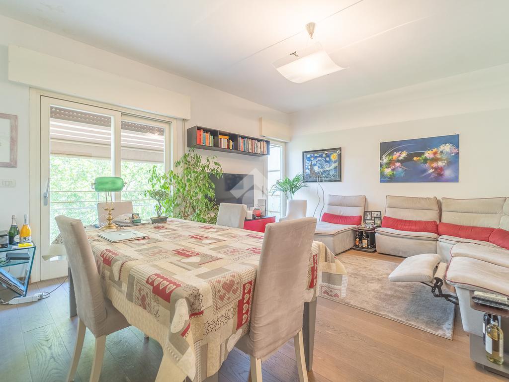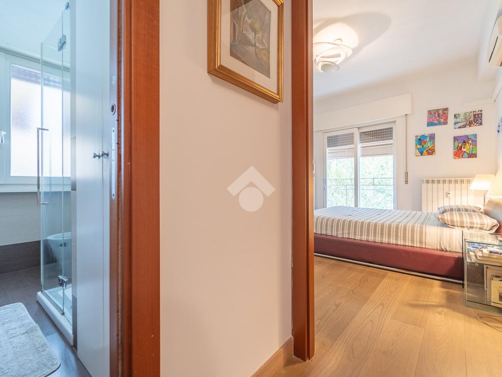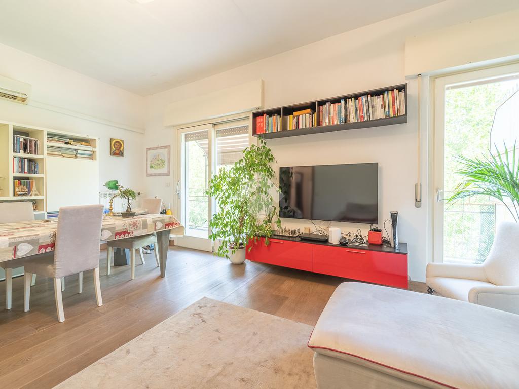 L'appartamento è composto di 2 locali ben distribuiti, un ampio salone, camera da letto, stanza adattabile ad uso studio o cabina armadio, cucina abitabile, bagno finestrato e armadio a muro, presenti inoltre due ampi balconi con doppia esposizione con affaccio su spazi verdi.